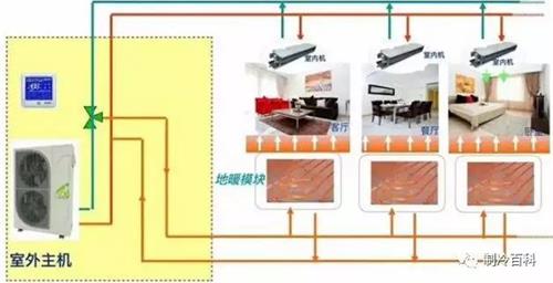 簡單說,兩聯(lián)供的室外主機(jī),在夏天的時(shí)候,產(chǎn)出冷水,冷水經(jīng)過循環(huán)系統(tǒng)在風(fēng)機(jī)盤管進(jìn)行熱交換,將冷氣吹出;在冬天的時(shí)候產(chǎn)生熱水,將熱水在專用管道內(nèi)循環(huán)流動,加熱地面裝飾層,通過地面輻射和對流的傳熱使地面升溫(水地暖)。